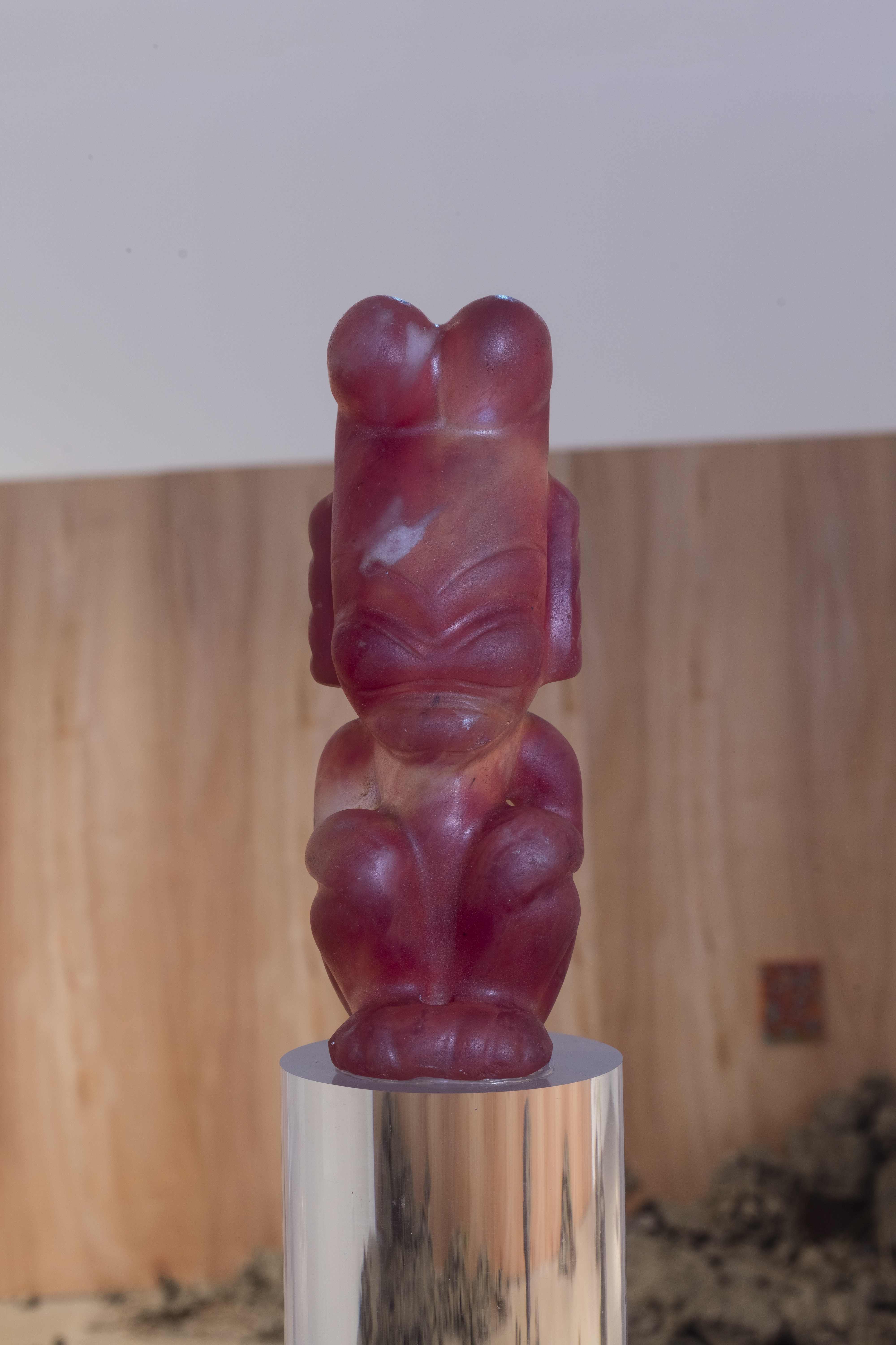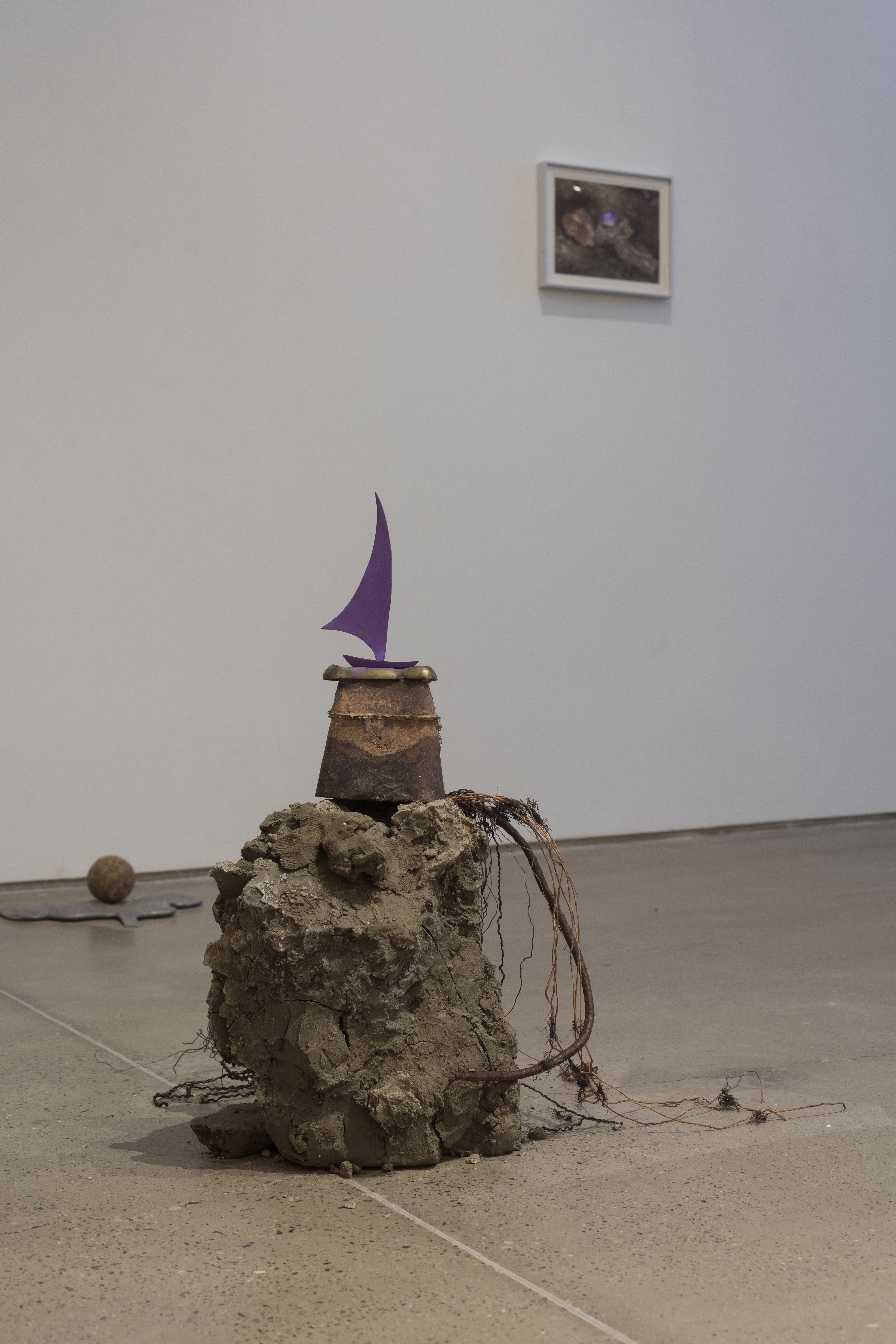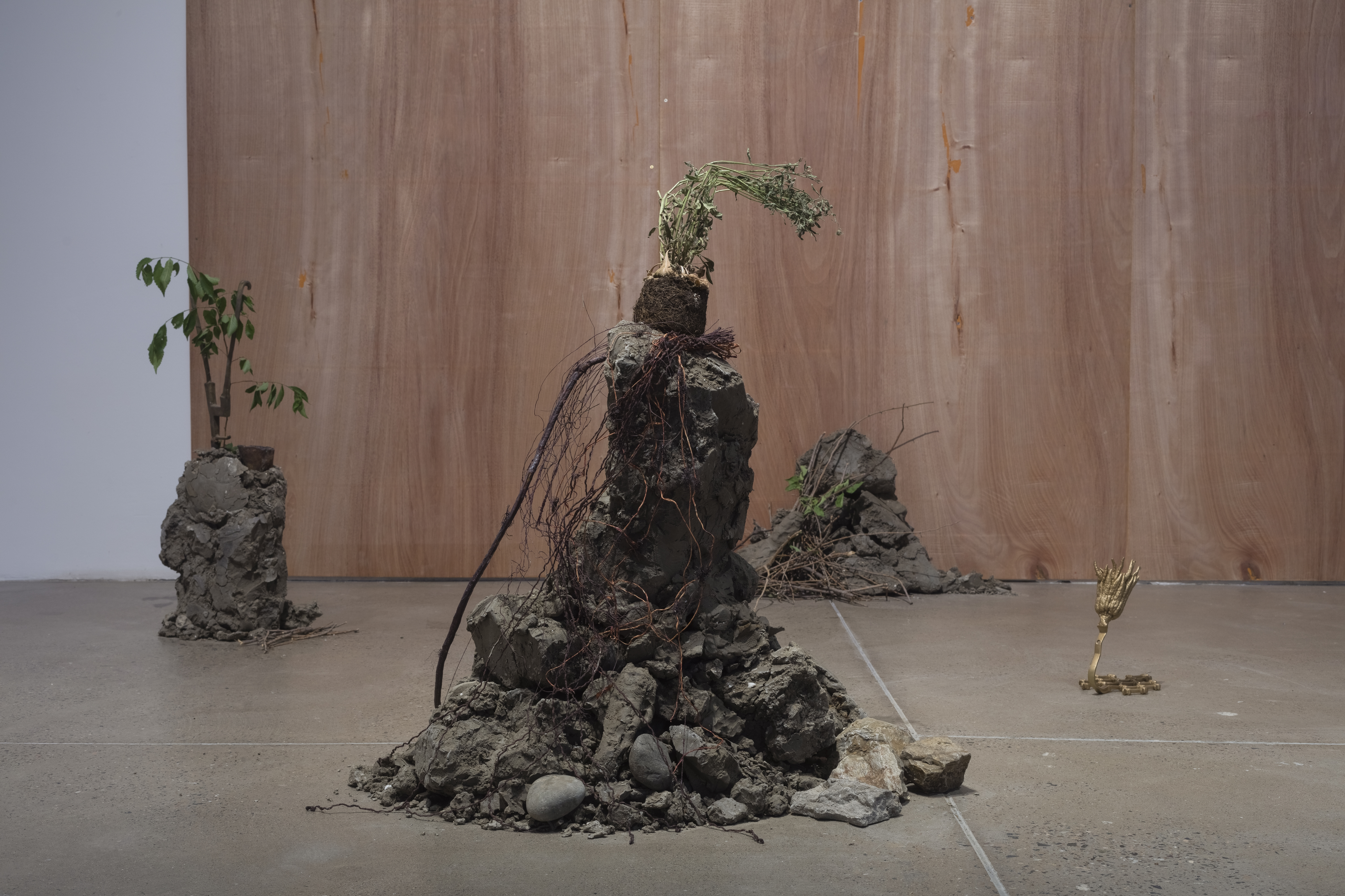 This body of work operates at the intersection of animism, ecological memory, and the shattered remnants of utopian dreams. Through sculptural installations, projected imagery, soundscapes, and field-based spatial arrangements, the artist constructs a post-utopian landscape—part archaeological site, part ritual field—where ancient belief systems and speculative futures converge. Situated in forests or exhibition spaces that resemble both shrines and war bunkers. Their ambiguous materiality—wood, stone, resin, soil, living plants, plastic, and metal—blurs the line between nature and artifact, living and non-living, sacred and synthetic.